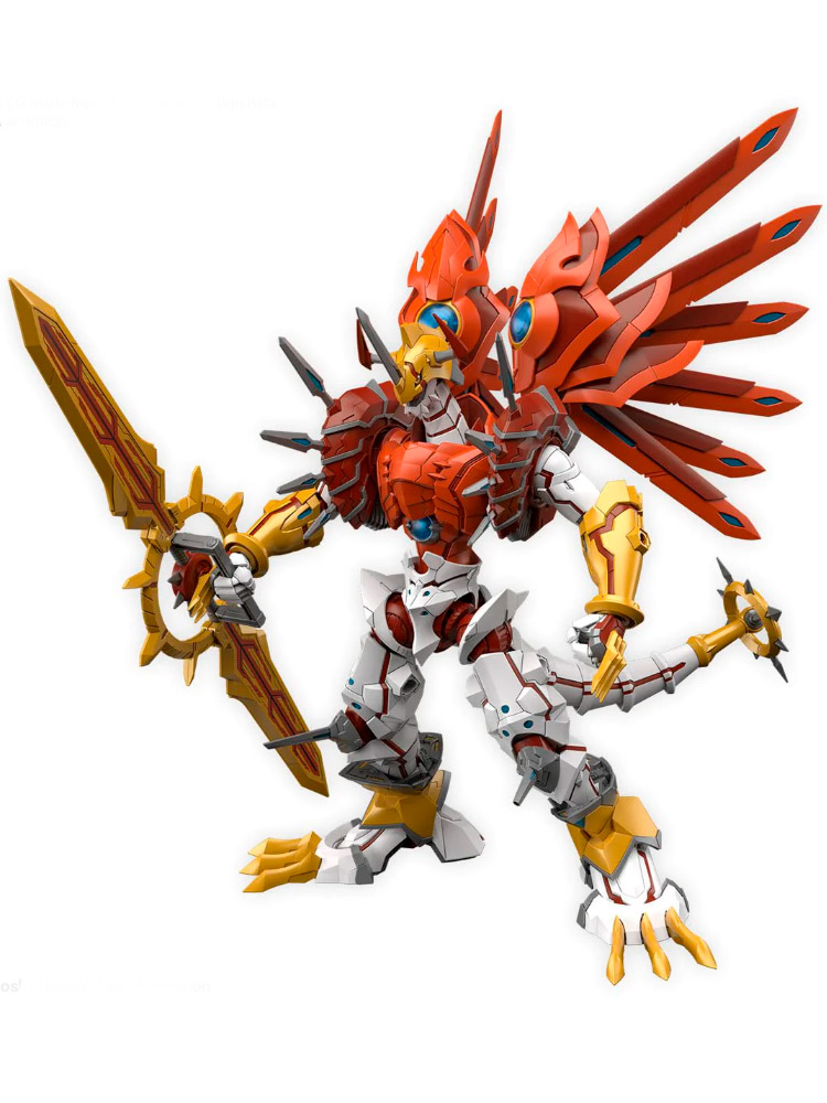 ¡ShineGreymon de “Digimon Savers” se une a la serie de maquetas “Figure-rise Standard Amplified” de Bandai! Este Digimon de tipo dragón ligero cuenta con articulaciones de hombro extraíbles para expandir el rango de movimiento, lo que le permite sostener la Espada Geo Gris con ambas manos. Un eje móvil en la punta de cada pie le permite mantenerse firme; La armadura detrás de las rodillas está unida a las piernas para un mayor rango de movimiento. La enorme Geo Gray Sword cuenta con sellos de joyas y sellos de PET, y en un truco original para este modelo, ¡puede transformarse en un modo de espada gemela con reemplazo de piezas! Cuando está en modo de espada gemela, se puede montar en cada una de las piernas de ShineGreymon. Cada una de las plumas de sus alas se puede mover individualmente, y un cable conductor está construido en su cola para mayor flexibilidad.