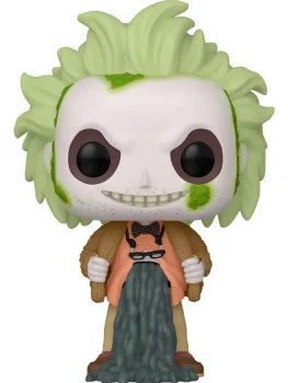 • Descripción: La versión estándar muestra a Beetlejuice en su icónico y memorable traje a rayas blancas y negras con su cabello verde desaliñado y su expresión astuta y burlona.